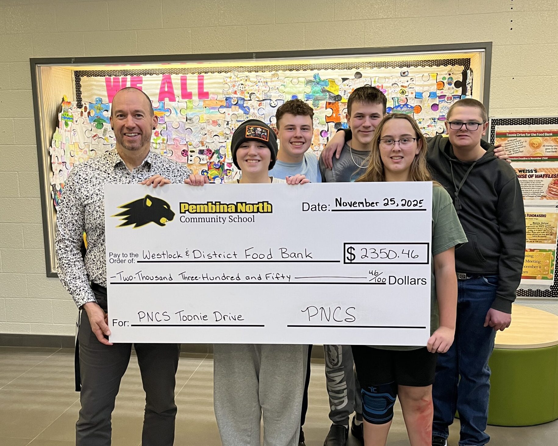 Students also made a significant community impact through a Toonie Drive in November, raising $2,350.46 for the Westlock and District Food Bank. Additionally, the Grade 6 class collected winter clothing for Westlock FCSS and stayed to help sort donations during their December 15 delivery.