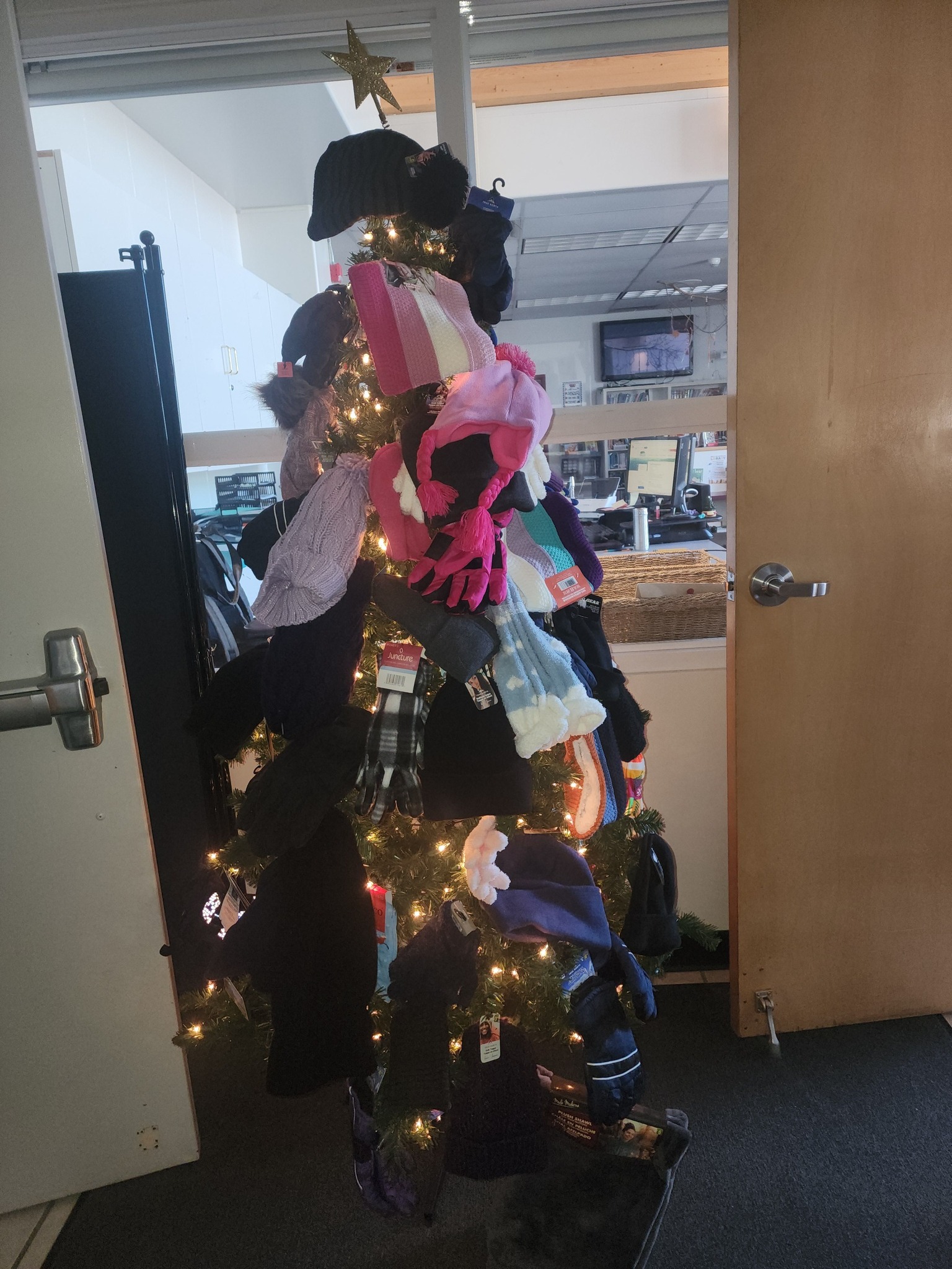Through the Tree of Warmth, students donated 62 winter items, including hats, mitts, socks, shawls, and neck warmers. Families also contributed 40 food bank items during the school Christmas concert, organized by the parent council.
