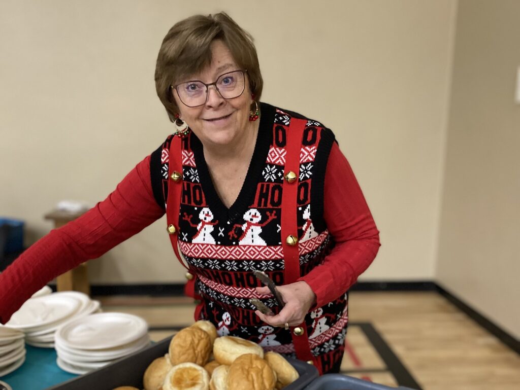 - Trustee Cindy Carswell helping serve